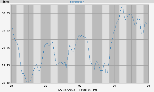 This week's min: 29.685 inHg at 12:54:00 PM (Wednesday)